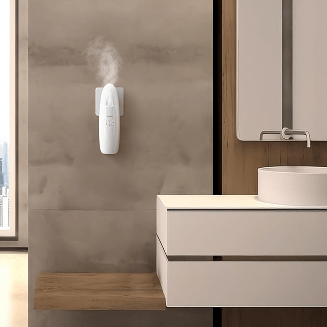 Difusor de aroma inteligente de grado profesional con tecnología sin agua (waterless) y plug-in directo a pared, ideal para aromatizar espacios con aceites esenciales puros de forma eficiente y sin complicaciones